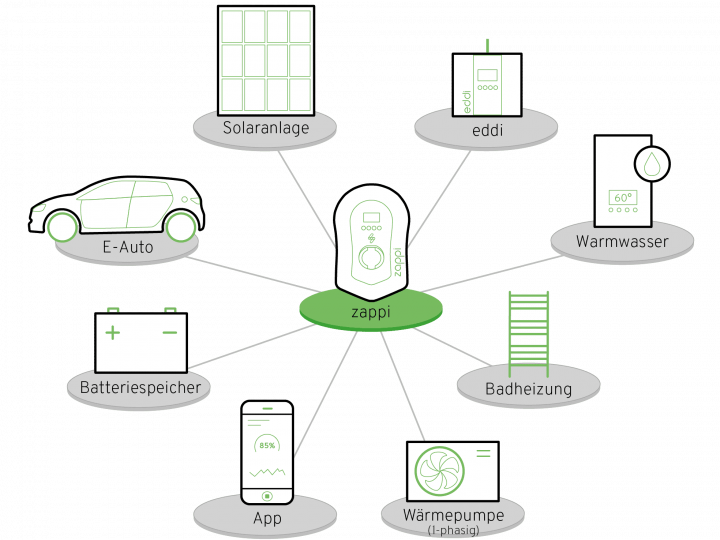 Auch ohne Solaranlage bietet die intelligente Wallbox mehrere Vorteile. Falls Sie sich später doch anders entscheiden, kann eine Anlage auch nachträglich ganz einfach mit zappi kombiniert werden