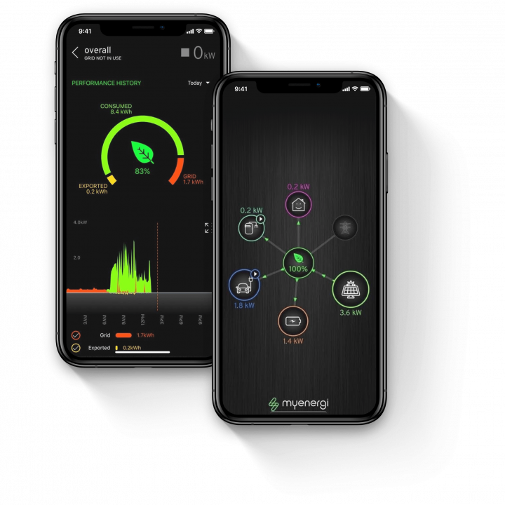 Das myenergi system+ lässt sich komfortabel über eine App steuern und ermöglicht die volle Kontrolle über Erzeugung und Verbräuche im Hausnetz. Egal ob für den schnellen Überblick dank leicht verständlicher Visualisierungen oder die genaue Analyse anhand exakter Messdaten.